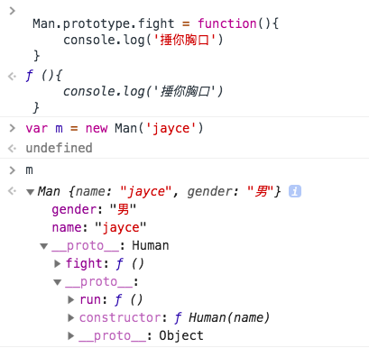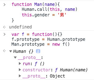 Man.prototype.__proto__ = Human.prototype // 2、将Man的原型 链到 Human的原型上