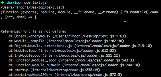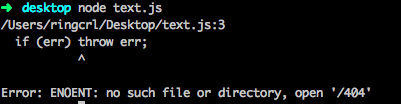 fs.readFile('/Users/ringcrl/Desktop/1.txt', (err, data) => { // 切记这里创建的文件不能写成~/Desktop/1.txt,命令行可以识别~,没说nodejs也可以!!!